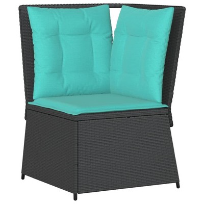 Product Name: VidaXL Patio Sofa Corner - Gray Modular Sofa Chair with Navy Blue Cushions, PE Rattan, 26.4"x26.4"x37.4", UV-Resistant, Easy Maintenance