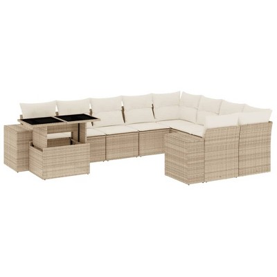 vidaXL Patio Sofa Set with Cushions Outdoor Furniture 10 Piece Poly Rattan