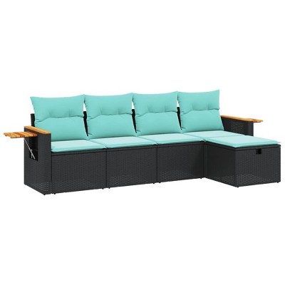 vidaXL Patio Sofa Set with Cushions Outdoor Furniture 6 Piece Poly Rattan - Black and Cream