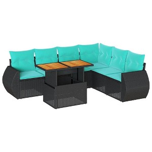 Upgrade your outdoor living space with this stylish 7-piece patio sofa set, designed for comfort and versatility. Crafted from durable black poly rattan, this set is perfect for relaxing, entertaining, or enjoying meals outdoors.