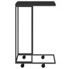 This portable side table is designed with a sleek black finish, made from premium engineered wood combined with a robust iron frame, ensuring both style and durability. The table's dimensions, measuring 15.7 in in length, 11.8 in in width, and 25.0 in in height, provide ample space while allowing it to fit seamlessly into various indoor environments, whether next to a sofa or bed.