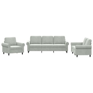 This 3-piece sofa set is designed to be the centerpiece of your living room, offering a perfect spot for chatting, reading, watching TV, or simply relaxing. Upholstered in soft light gray velvet, this set combines modern and traditional elements with its clean lines, rolled armrests, and subtle silver nailhead trim.