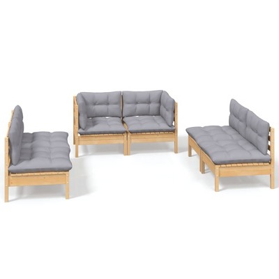 vidaXL Solid Pinewood Patio Lounge Set 6 Piece with Cushions - Brown and Gray
