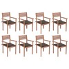 vidaXL Stackable Patio Chairs with Cushions 8 pcs Solid Teak Wood