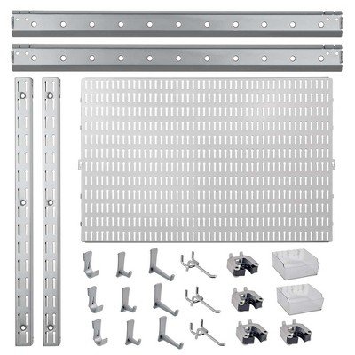 With 2 adjustable shelves with hooks and 1 perforated plate with Euro holes
