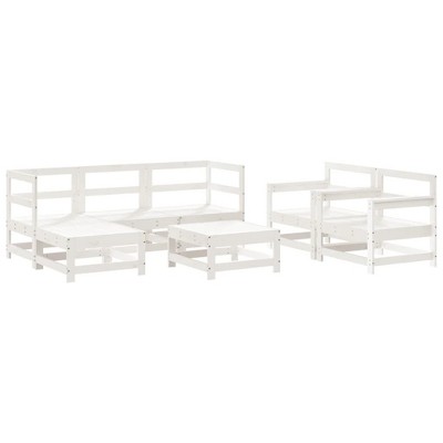 vidaXL White 7-Piece Solid Pine Wood Patio Lounge Set/Outdoor Furniture Set - Garden, Patio, Terrace, Modular Design