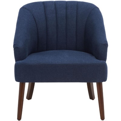 Introducing the Videl Accent Chair in Navy, where elegance meets comfort. This stunning chair is crafted with a sleek wood frame and upholstered in a rich navy fabric, making it the perfect addition to any room. Its timeless design and deep color create a sophisticated look that complements various interior styles. The sturdy construction ensures it will be a cherished piece in your home. Whether placed in a living room or study, the Videl Accent Chair invites you to sit back and relax with style. Embrace the blend of form and function with the Videl Accent Chair. Your space deserves this touch of refinement.