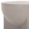 Add a dose of interest and elegance to any room with our Vidette accent table. Showcasing bold geometry and a soft inviting silhouette, our accent table is sure to make an impact. Its drum-shaped top gracefully balances upon three beautifully sculpted legs. Crafted from a durable material, our grey accent table stands out with its soothing and subtly textured plaster-like surface. It can serve as a sculptural pedestal for your decor items and keeps essentials within easy reach next to a sofa or armchair.