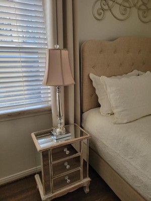 The perfect lamp for my mirrored nightstand. My search was finally over when I found this beauty. So elegant.
