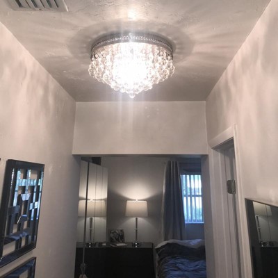 Vienna Full Spectrum Luxury Ceiling Light Flush Mount Fixture Brushed Nickel 15 1/4" Wide Crystal Droplets for Bedroom Hallway