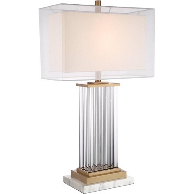 Vienna Full Spectrum Modern Table Lamp 28" Tall with Square Riser Stacked Crystal Spheres White Drum Shade for Bedroom Living Room House Home Bedside