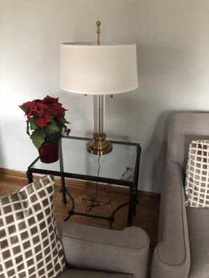 Beautiful lamp!! Received in shipping with no problem. Looks nice in piano room!!