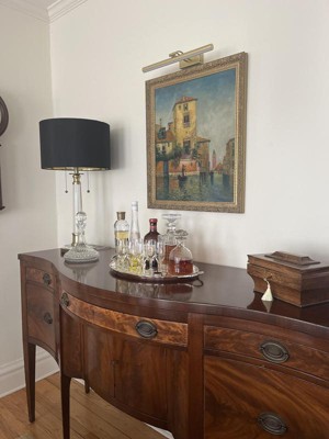 We love our Vienna full spectrum Stephen Crystal column lamp set and our embroidered hourglass lampshades. Just perfect for our bedroom dresser.