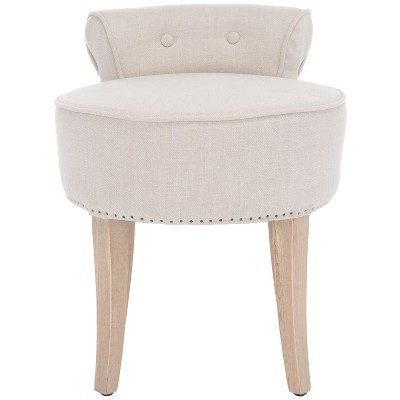 A button tufted back with brass nailhead trim create a sophisticated look for adding interest to any room