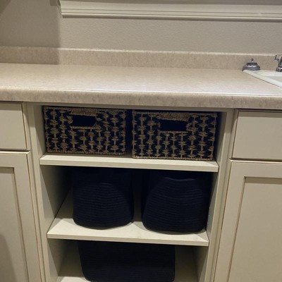 Villacera Rectangle Hand Weaved Wicker Baskets made of Water Hyacinth - Set of 2 Nesting Black and Natural Seagrass Bins
