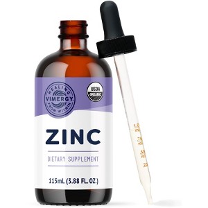 - PEACE OF MIND CLEAN. VIMERGY Zinc is a clean formula with only 4 ingredients and no fillers. Our product is designed to work well for everyone, even people with highly sensitive systems. Our zinc drops contain no sugar, colors, flavors, or preservatives. And it is USDA Certified organic, non-GMO, vegan, kosher, and paleo friendly. With its naturally delicious taste, you can take VIMERGY Zinc directly from the bottle or easily add drops to a glass of water or fruit juice.