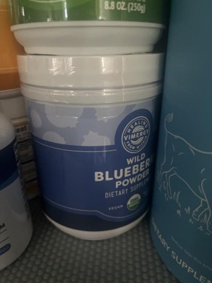 4 GRAMS OF CLEAN WILD BLUEBERRY POWDER: This particular supplement has 4 grams of organic wild blueberry powder per serving. This is perfect for those looking for a superfood with many benefits that lead you to overall better health. CLEAN INGREDIENTS: VIMERGY Organic Wild Blueberry Powder is Non-GMO, Gluten-Free, Soy-Free, Corn-Free, Kosher, Vegan & Paleo Friendly. There are no fillers, additives, artificial flavors or natural flavors. WILD LOWBUSH BLUEBERRIES:Wild Blueberries (lowbush) are higher in anthocyanins and total phenolics (antioxidants), compared to the cultivated, or highbush varieties often found in stores.HARVESTED WILD IN CANADA:Harvested wild in Canada. Grown in a region that has some of the cleanest air, purest water table, and least amount of pollution in the world. * ABOUT WILD ORGANIC BLUEBERRY POWDER:Ready to get wild? It’s time to bring the goodness of wild blueberries into your life. VIMERGY Organic Wild Blueberry Powder contains only one ingredient, lowbush blueberries, harvested wild in Canada, in a region that has some of the cleanest air, purest water table, and least amount of pollution in the world. For powerful antioxidant benefit, simply add this delicious powder to your morning smoothie and enjoy! Or try sprinkling it on fruit or dipping bananas in it. HOW TO USE:Serving: Mix 1 scoop (4g) in water, juice, or a smoothie. Take one to two times daily. Or try sprinkling it on fruit or adding it to baked goods. Storage: Store in a cool, dark place.*These statements have not been evaluated by the Food and Drug Administration. This product is not intended to diagnose, treat, cure, or prevent any disease.