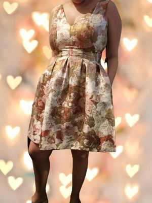 [This review was collected as part of a promotion.] thrilled with their Vince Camuto Jacquard Sleeveless V-neck Release Pleat Fit and Flare dress, saying it's a "must-have" for anyone looking for a statement piece. The dress fits well, hugs curves, and has a flattering V-neckline. The quality is exceptional, with luxurious jacquard fabric and precise stitching. The dress is versatile, suitable for both casual and formal occasions. The reviewer highly recommends the dress, giving it 5/5 stars and suggesting it's an investment worth making.