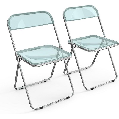 VINGLI Acrylic Folding Chairs, Clear Chair Foldable and Stackable, Plastic Panel & Metal Chrome Frame, Weight Capacity 350 lbs, set of 2