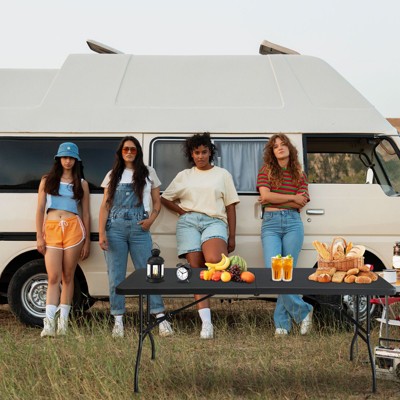 VINGLI Black 48" Round Bi-Folding Commercial Table, 4 Feet Portable Plastic Dining Card Table for Kitchen or Outdoor Party Wedding Event, 1-Pack