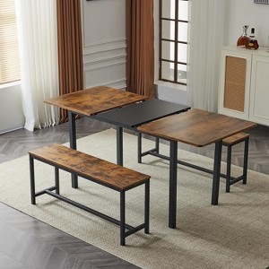 VINGLI Extandable Dining Table Set for 4-6, Foldable Expandable Table Set 2 Benches, Folding Kitchen Table for 6