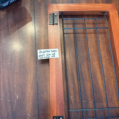The gate I received is EXTREME POOR QUALITY. POOR MANUFACTURED. Holes don’t match gapes in seams, dents, chips. Missing prefilled holes & holes that don’t line up. GARBAGE. The design is great. I have plans to Put it around my fireplace to prevent my grandkids getting too close.