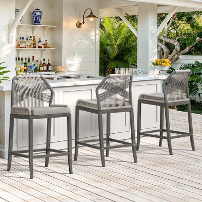 VINGLI Outdoor Bar Stools Set of 2, Rattan Patio Bar Stools with Backrest, Aluminum Frame Garden Balcony Pool Bar Chairs