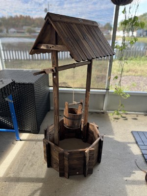 VINGLI Wooden Wishing Well Outdoor Planters Yard Decor for Patio Garden Brown 22" w/ 2 Reinforced Rods