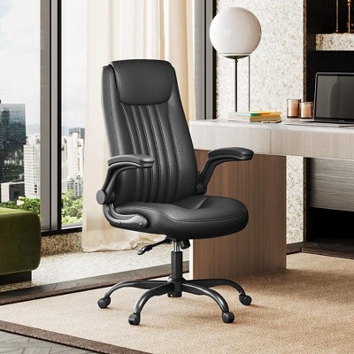 Vinsetto High Back Office Chair with Flip Up Armrests, Swivel Computer Chair with Adjustable Height and Tilt Function, Dark Gray
