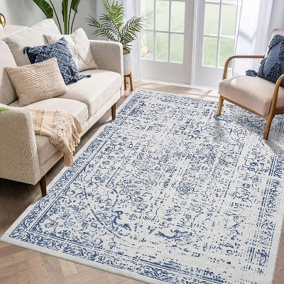 Vintage 4x6 Area Rug - Stain-Resistant, Non-Shedding, Non-Slip, Soft Low-Pile Farmhouse Oriental Carpet for Dining or Home, Black