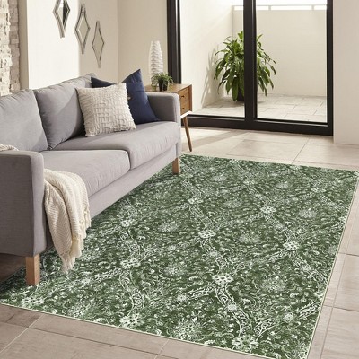 Vintage 5x7 Machine Washable Geometric Patchwork Rug for Living Room Non-Slip Low-Pile Indoor Carpet