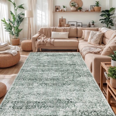 Vintage Area Rug 6x9 Washable Rug, Soft Boho Rug Retro Distressed Floral Carpet for Living Room Bedroom & Dinning Room, Pink