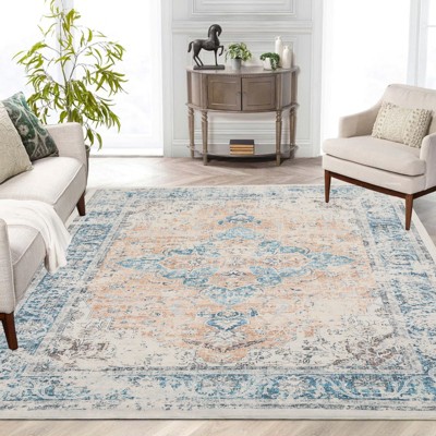Vintage Area Rug Machine Washable Floral Carpet Non Slip Non Shedding Ultra Thin Floor Cover Foldable Indoor Mat