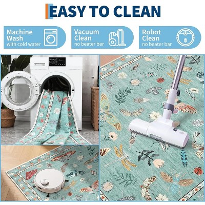 4x6 Vintage Area Rug, Machine Washable Non-Slip Carpet for Living Room, Bedroom, Dining Room, Brown and Green