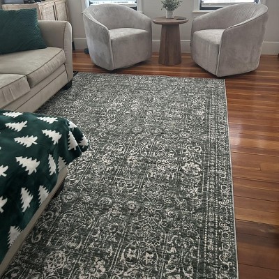 Vintage Area Rug Washable Rug Floral Bedroom Rugs Non Slip Low Pile Throw Rugs, 9'x12'