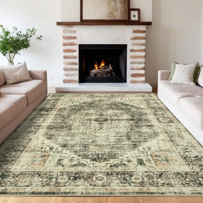 Vintage Area Rugs for Living Room, Machine Washable Soft Distressed Area Rug, Low Pile Non Slip Throw Floor Carpet