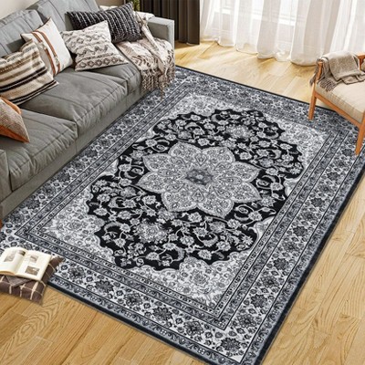 Vintage Area Rugs Machine Washable Rug Stain Resistant Carpet Non-Slip Low Pile Carpet Mat for Hallway Kitchen Beige