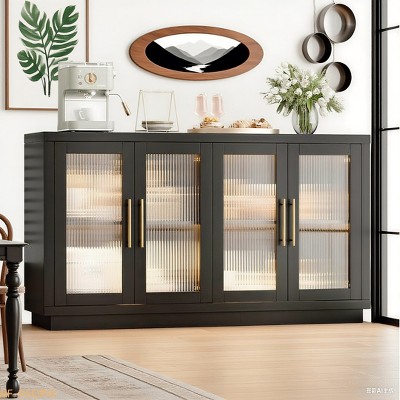 Vintage Black Brown Sideboard with Two Drawers and Four Doors for Living Room, Bedroom, and Kitchen, Room Storage Cabinet, Black Brown
