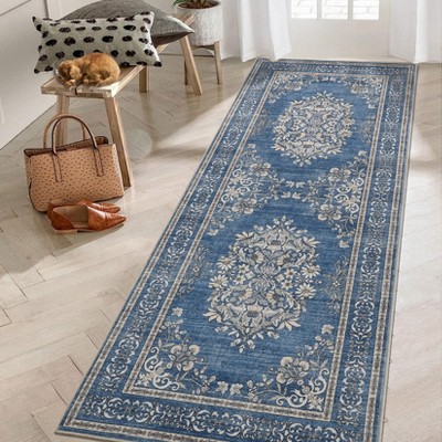 Vintage Boho Kitchen Runner Rug 10x13 Floral Medallion Rugs Farmhouse Rustic Soft Long Carpet Runners for Hallway Entryway, Black