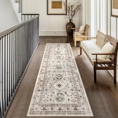 Vintage Boho Rug Super Soft Washable Rugs for Living Room Non Slip Non Shedding Indoor Carpet Low Pile Light orange 2ft*6ft(61cm*183cm)