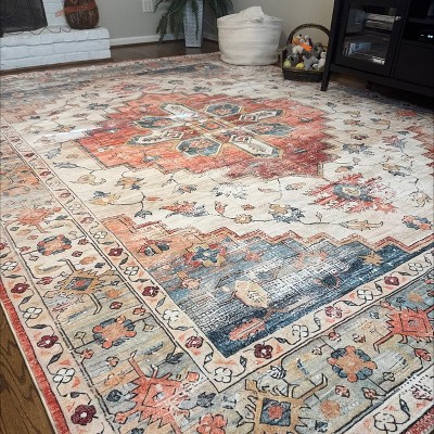 Vintage Boho Rugs Washable 8'x10' Rug Non Slip for Living Room Bedroom Medallion Accent Floor Carpet Indoor, Orange