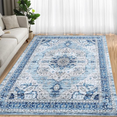 Vintage Distressed Area Rug Low Pile Non-Slip Rugs Washable Rug