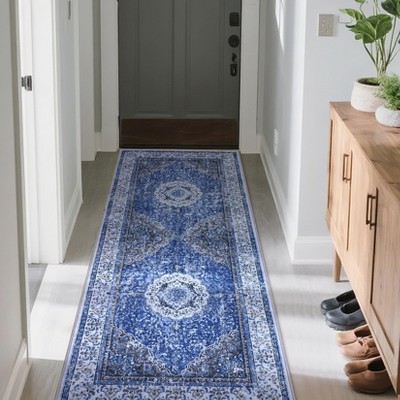 Vintage Floral 2x6 Runner Rug, Washable and Non-Slip Stain Resistant, for Hallway Entryway and Kitchen