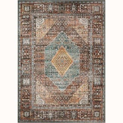 Vintage Floral Runner Rug, Machine Washable, Non-Slip, Stain-Resistant, Soft Low-Pile Carpet, Pet-Friendly for Entryway, Laundry Room, Bedroom