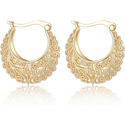 Design--Elegant yet understated, these retro gold hoop earrings showcase a slightly flared silhouette and beautiful Irregular shield cutout design. From casual to sophisticated style, always match the look of everyday life. We hope that these earrings will make you more beautiful and happy.