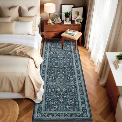 Vintage Hallway Runner Rug,Non-Slip Washable Rug with Rubber Backing,Low Pile Printed Intaglio Rug,Kitchen,Laundry Room,Entryway