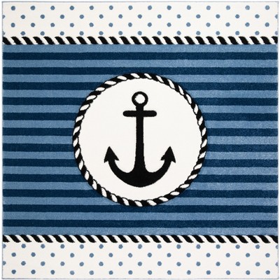 Elevate your home decor with the timeless elegance of our 3' x 3' square area rug in a sophisticated blue and grey color palette. Constructed with precision using a power-loomed technique, this rug boasts a plush 5/8" pile height that offers a luxurious underfoot experience.