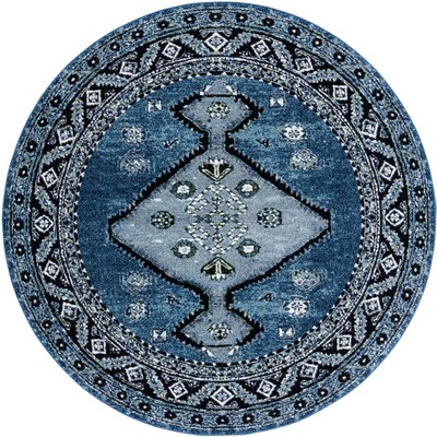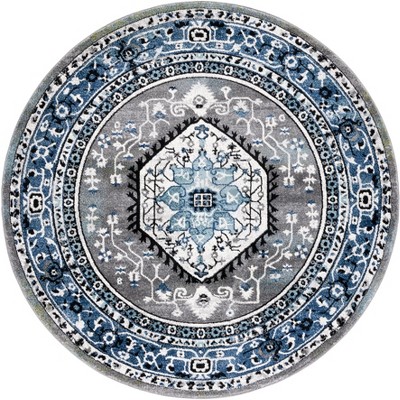 Elevate your living space with the timeless elegance of our 6-foot-7-inch round area rug, boasting a harmonious blend of blue and grey tones. Each rug is meticulously crafted in Turkey using power-loomed techniques, ensuring precision and durability. Made with high-quality polypropylene, this rug offers a plush pile height of 5/8 inches, perfect for adding a touch of comfort underfoot.