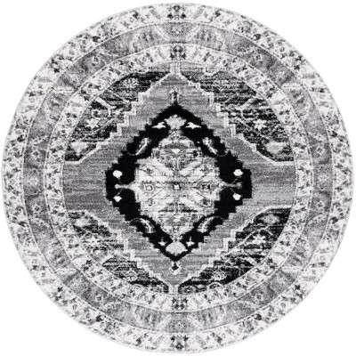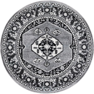 Enhance the elegance of your space with our sophisticated 6'7" X 6'7" round area rug, rendered in a tasteful palette of light grey and dark grey. This gracefully designed rug features a transitional style that flawlessly integrates with both contemporary and traditional decor, bringing a sense of harmony to your room.