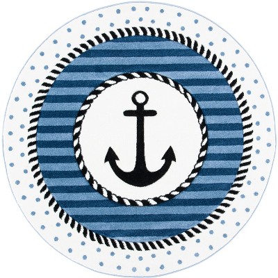 Elevate your living space with the charm of old-world artistry and a modern twist. Our exquisite 3 ft x 3 ft round area rug, crafted with a power-loomed technique, presents a durable and easy-to-maintain piece made of 100% polypropylene. This plush accessory, with a comfortable height of 5/8 inch, boasts a stunning combination of red and light blue colors that bring life and vibrancy to any room.